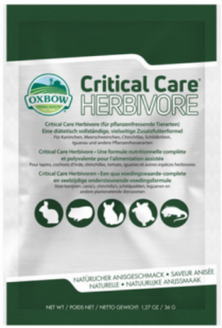 Critical Care è una formula completa di “alimentazione assistita” per erbivori che non mangiano a causa di malattia o intervento chirurgico. Non importa se la mancanza d’appetito dell’animale è dovuta a malattia, convalescenza post-operatoria o dolore, Critical Care svolge un ruolo nutrizionale importante nell’ambito del programma di convalescenza del “paziente”. La fibra a base di foraggio è necessaria per incoraggiare la crescita microbica nell’apparato digerente di piccoli erbivori. Il fieno di fleolo (nome botanico: Phleum pratense), la componente principale di Critical Care, offre il corretto equilibrio di fibra a base di foraggio e carboidrati solubili necessari ad assistere la popolazione microbica naturale dell’apparato digerente di piccoli erbivori. Istruzioni per l’alimentazione: mescolate una parte di polvere secca con 1,5 parti di acqua tiepida. Vari metodi di somministrazione potrebbero richiedere l’aggiunta di una quantità superiore di acqua. Somministrate 50 cc di prodotto miscelato per ogni chilogrammo di peso corporeo ogni giorno, suddiviso tra 4-6 pasti, a qualsiasi mammifero o rettile erbivoro. Mettete in frigorifero eventuali porzioni inutilizzate e usatele entro 24 ore. I risultati migliori si ottengono quando piccole quantità vengono miscelate sul momento in occasione di ogni pasto.