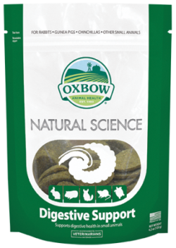 Natural science digestive support è un efficace integratore per il benessere dell'apparato digerente di conigli, cavie, cincillà, ecc. Digestive support è un alimento complementare caratterizzato da fibra lunga e da vari ingredienti benefici. Dosi consigliate: da 0 a 0,450 Kg mezza tavoletta al giorno; da 0,450 a 1,800 Kg una tavoletta al giorno; oltre 1,800 Kg 2 tavolette al giorno. Composizione: erba di creolo, farina d'orzo, farina di avena, melassa di canna, farina di semi di lino, colture di lieviti (disidratate), goma di xantano, semi di fieno greco, camomilla, radici di cicoria (fonte di inulina), radice di zenzero, ulmus fulva, lieviti idrolizzati, alghe (fonte di omega3 DHA). Costituenti analitici: proteine 13%, contenuto di grassi 5%, fibre grezze 11%, ceneri grezze 5,50%. Confezioneda 60 tavolette per un totale di 120 grammi. Conservare in luogo fresco e asciutto. Chiudere ermeticamente il barattolo dopo ogni utilizzo.