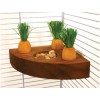 Supporto/piattaforma angolare interattiva con 3 carote in legno. Dotato di vite per essere fissato eventualmente a gabbie o recinti. Adatto a coniglietti e roditori che possono rimuovere le "carote" con cui giocare o rosicchiare. La piattaforma contiene un quarto spazio circolare da riempire con mangime o premietti. . Il supporto misura 12 x 12 cm.