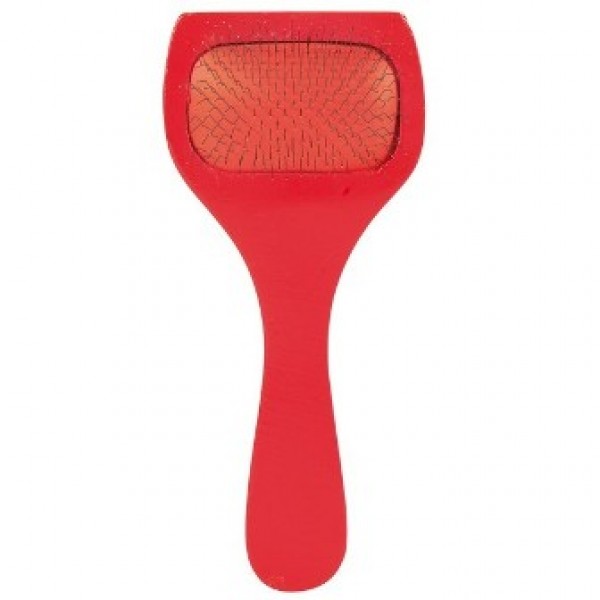 Cardatore con manico in legno per la cura del pelo in superficie e del sottopelo. Setole morbide in metallo. Offerto in colori assortiti. Misure: 6x13cm