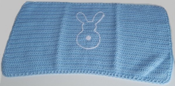 Copertina in lana fatta interamente a mano con ricamo centrale. Calda e morbida, da usare come accogliente tappetino per pavimenti, divani, trasportini ecc. Utilissima anche per coprire il vostro coniglietto con qualcosa di soffice per i viaggi nelle giornate fredde ma anche in casa per il massimo comfort. Colore celeste. Misura cm50x30