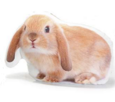 Originalissimo cuscino imbottito a forma di coniglietto. Offerto in colori e soggetti assortiti. Perfetto per abbellire divani o letti. Misure: 27×36,5cm