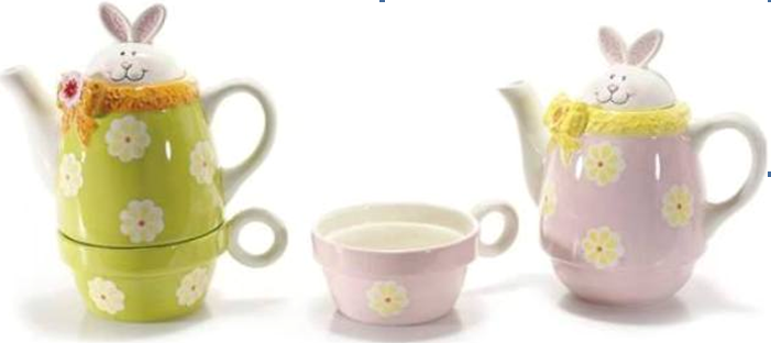 Bellissimo set composto da 1 teiera + 1 tazza sovrapponibili in ceramica decorata come in foto. Offerto in colori assortiti (rosa o verde) Misure: cm 16 x 9,8 x 18 H. Capacità teiera: 460 ml – Tazza: Ø 9,7 x 4,9 H – Capacità tazza: 170 m.