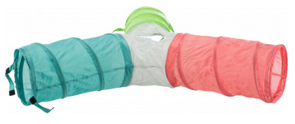 Con Trixie il tunnel si fa in tre! Tunnel composto da tre elementi in nylon, stabile grazie alla molla a spirale. Con quattro ingressi! E’ offerto in colori assortiti. Ogni elemento ha un diametro di 18cm ed è lungo 47cm